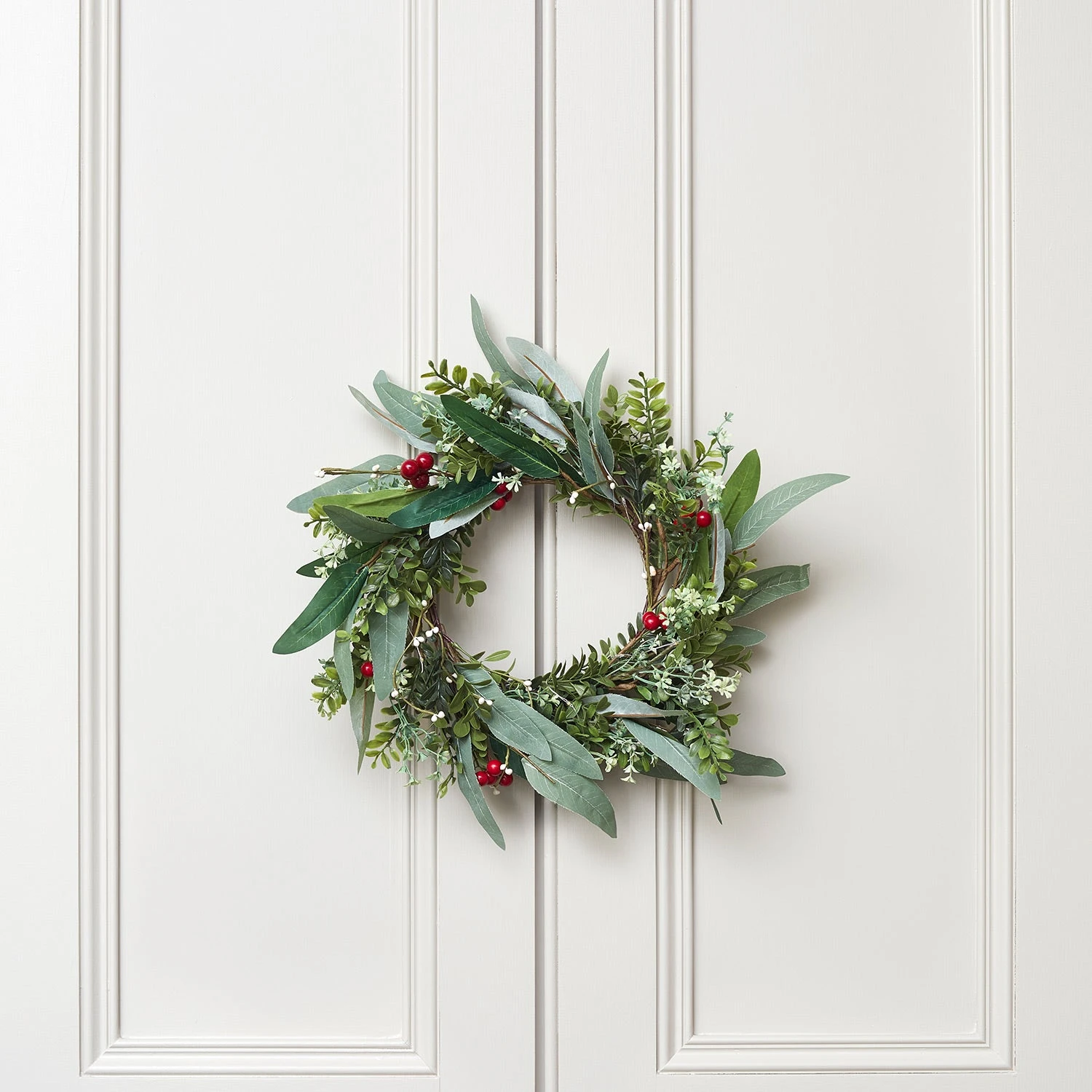 Create a festive entrance to your home with our berry wreath. Made from a mix of faux foliage, red and white berries and finished with an eye-catching red ribbon, it’s sure to bring a Christmassy feel. Constructed from a strengthened natural frame, our wreath is a traditional piece for your interior and measuring at a diameter of 45cm, it looks great displayed on it’s own on the door or wall of your choice or can be entwined with micro lights to bring it to life. It can also be styled on your dining table as a centrepiece with one of our TruGlow® LED pillar candles popped in the middle for a cosy glow. The faux foliage looks so realistic, your guests won’t be able to tell the difference! Store away carefully and bring back out year after year for the festive season.