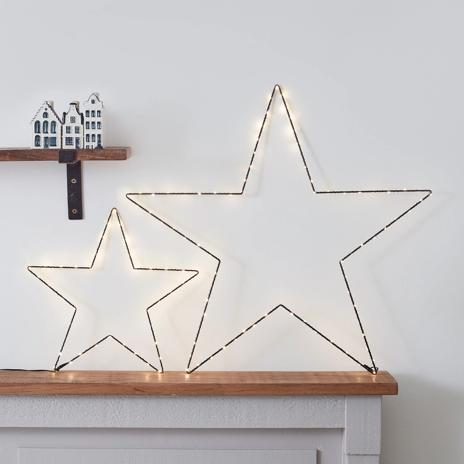 Our favourite star duo is now in black! This perfect pair makes an unmissable feature that you can style with ease & enjoy all year round. With black metal frames entwined in warm white micro LEDs, the modern new colour is sure to add a timeless sparkle to your home. With a 1m lead cable, you can style our stars with ease, hang in your window or place on your mantelpiece for an eye-catching glow. To illuminate simply pop 3 x AA batteries into each battery box and select the 6 hour timer to watch your home come to life night after night!