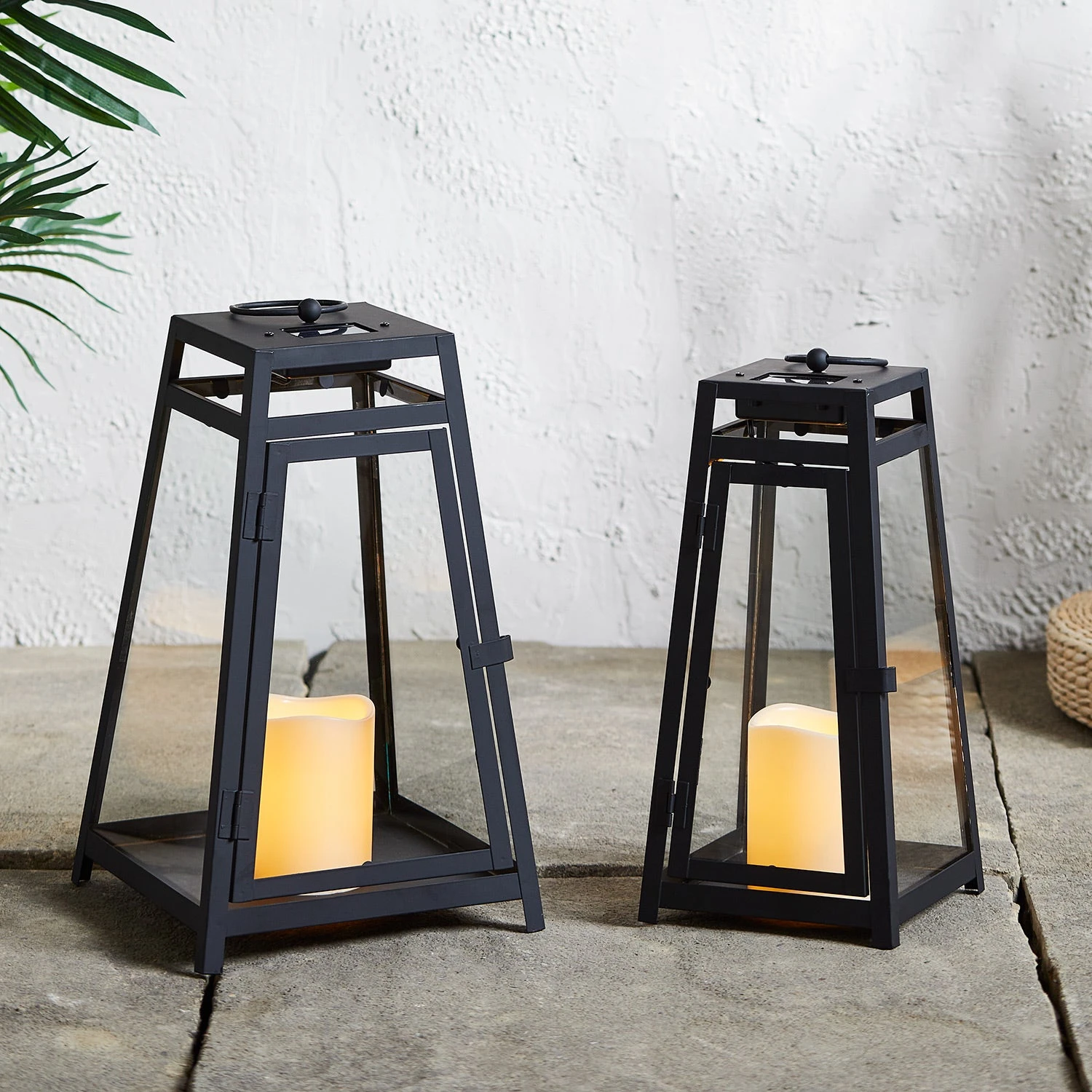 Add a decorative touch to your outdoor space with our large Lismore solar lantern! 40cm tall and incorporating a black metal frame as part of its design, it’s a great feature for sitting on doorsteps, patios or terraces alike. With an LED candle placed inside, the realistic flickering flame produces a warm glow once illuminated. Simply pop the lantern in a sunny spot in your garden to enable a full day’s charge and you can expect up to 8 hours of illumination each night!
