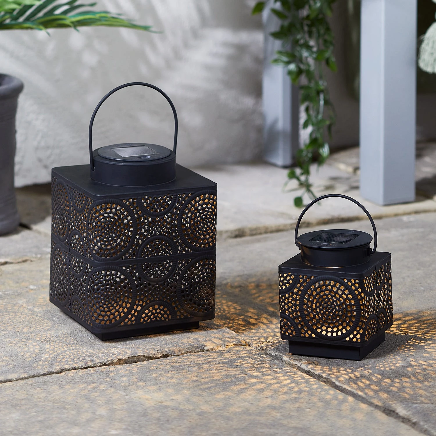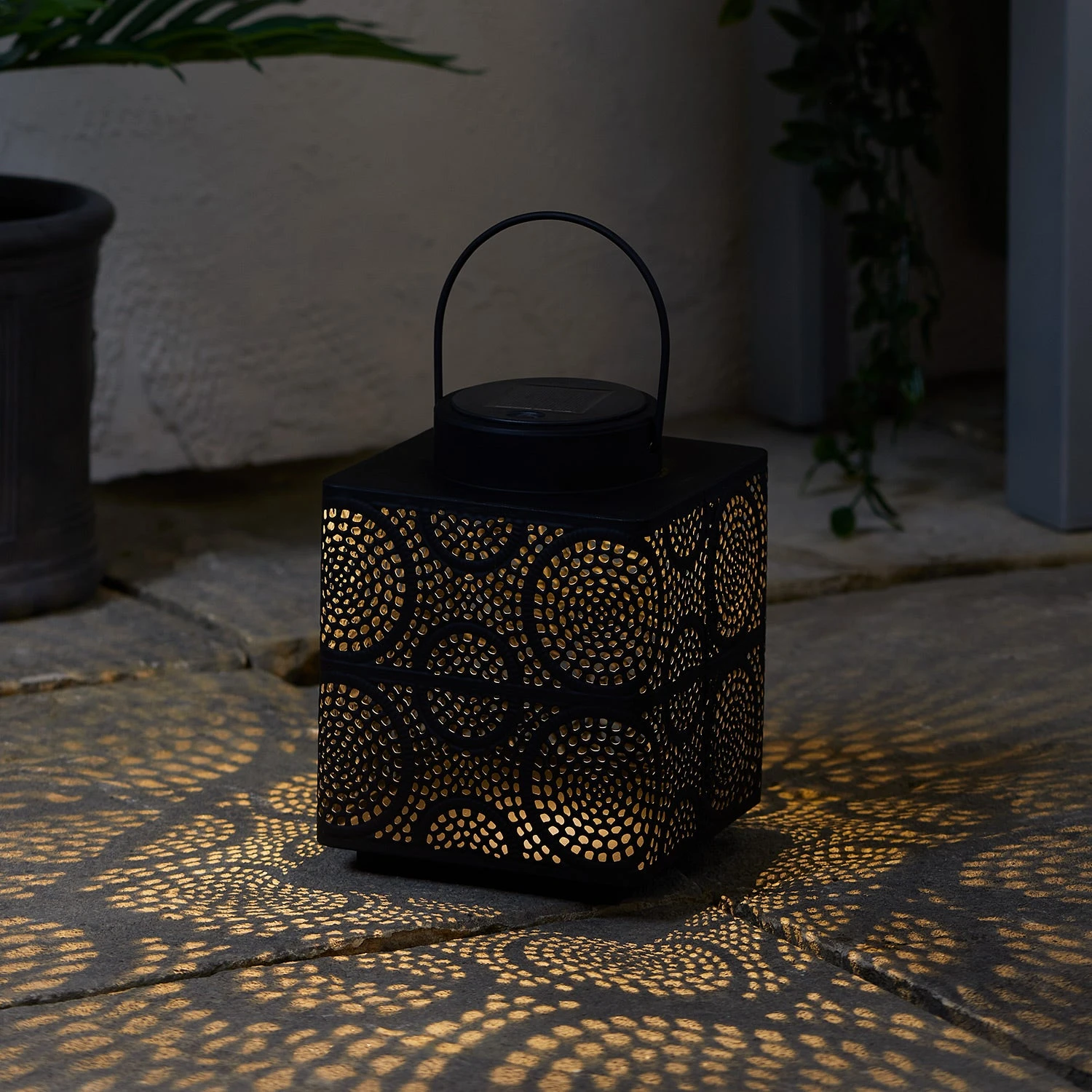 An exotic addition to your garden, our large Taza Moroccan lantern is an unmissable piece to feature as part of your outdoor display for summer. Made from metal and incorporating a square shape, this distinct looking lantern features a detailed cut out design to create a patterned glow once darkness falls. Measuring at a height of 19.5cm, it’s the ideal accessory for sitting on table tops to set the mood in your outside seating area or when dining alfresco. Simply pop the lantern in a sunny spot in your garden to enable a full day’s charge so you can enjoy up to 8 hours of illumination each night.