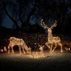 Set Of 3 Regular Harlow Rattan Dual Colour LED Light Up Reindeer Family