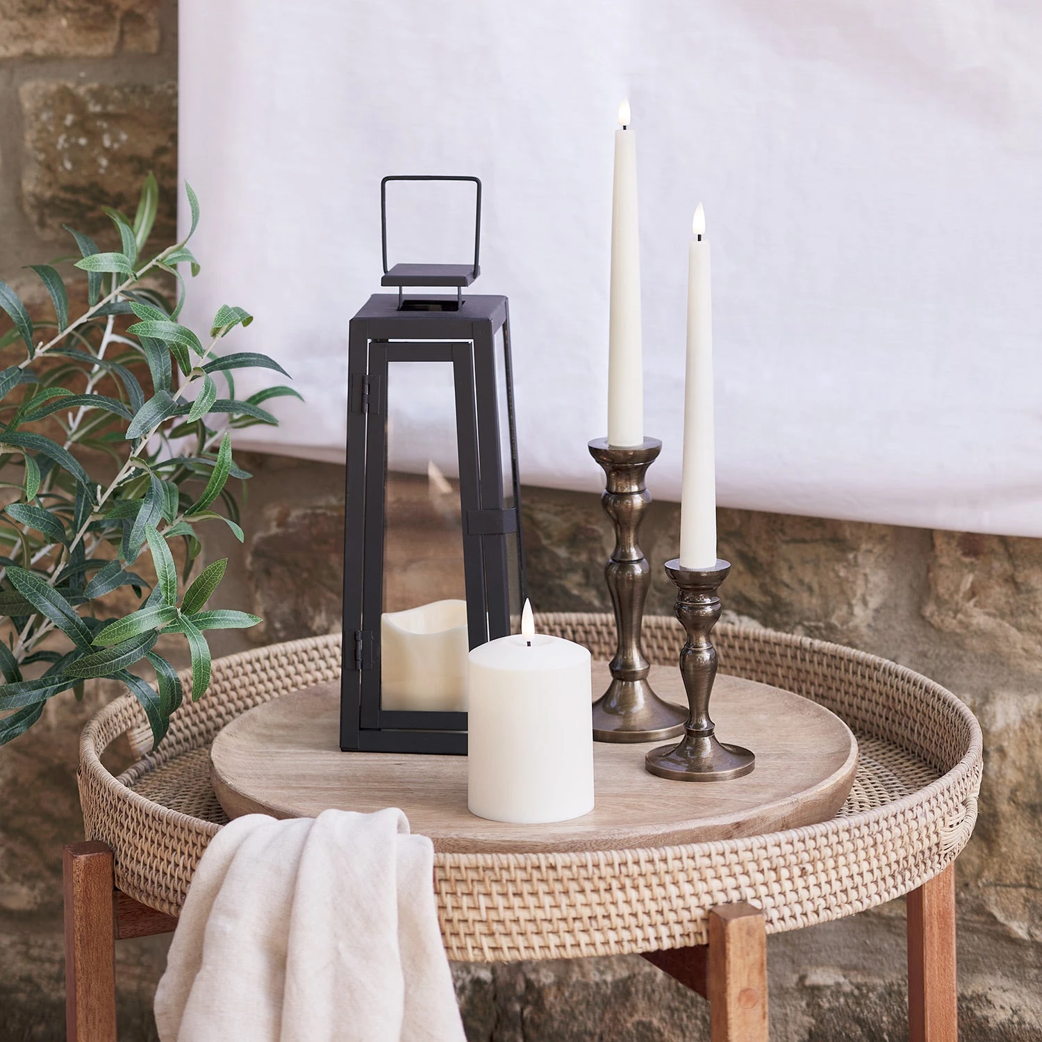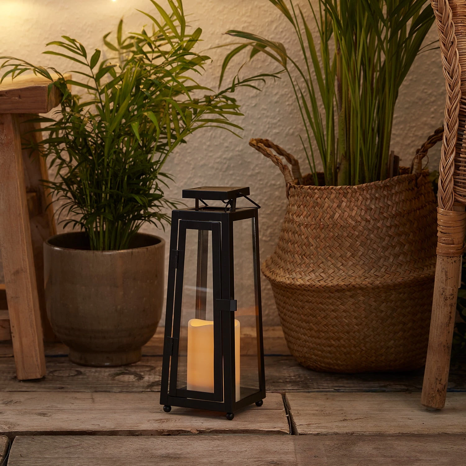 Create an atmospheric glow with our Porto lantern. The solar panel at the top soaks up the sun during the day and the cream pillar candle within radiates a warm white flicker as the evening draws in. From porchways to pathways or decorating alfresco soirees and big family BBQs, this lantern brings a cosy glow wherever it goes. Made from charcoal powder coated metal and with an IP44 rating, you can be safe in the knowledge that it’s happy outdoors.