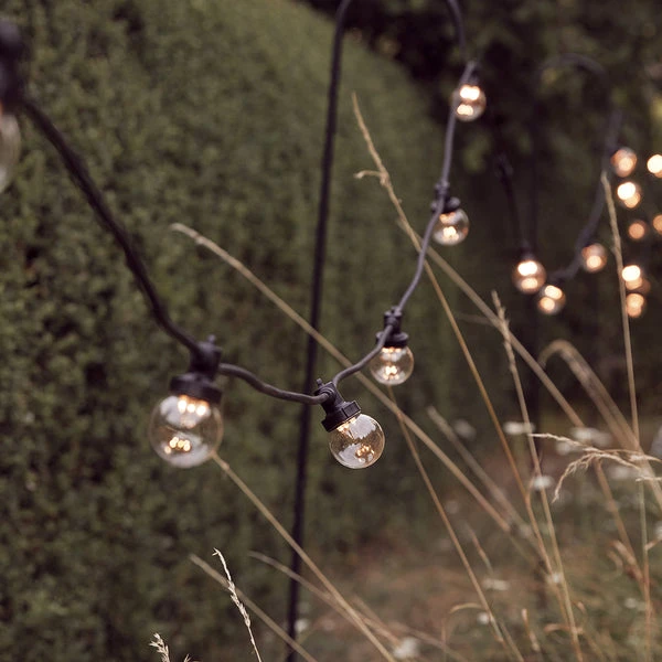 With a new and improved design, our Pro Connect festoons are a must-have for creating the perfect ambience at events or transforming an outdoor space. Each 5m string features 10 clear cap bulbs spread evenly across black cable. With 5 LEDs inside each bulb they radiate a warm white glow wherever they go! Our Pro Connect range is premium quality lighting, ideal for commercial use or a big garden project! Compatible with our previous Pro Series Festoons and with the ability to connect up to 150m of lights from one plug, the simple connectors on the ends of each string make it incredibly easy to connect them together to create the perfect length. Select the compatible Pro Connect plug above (sold separately). The standard plug comes with a 1.5m lead cable & the timer plug has a 2m lead cable.