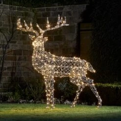 Large Studley Rattan Stag & Doe Dual Colour LED Light Up Reindeer 24v