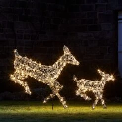 Regular Harlow Rattan Doe & Fawn Dual Colour LED Light Up Reindeer 24v