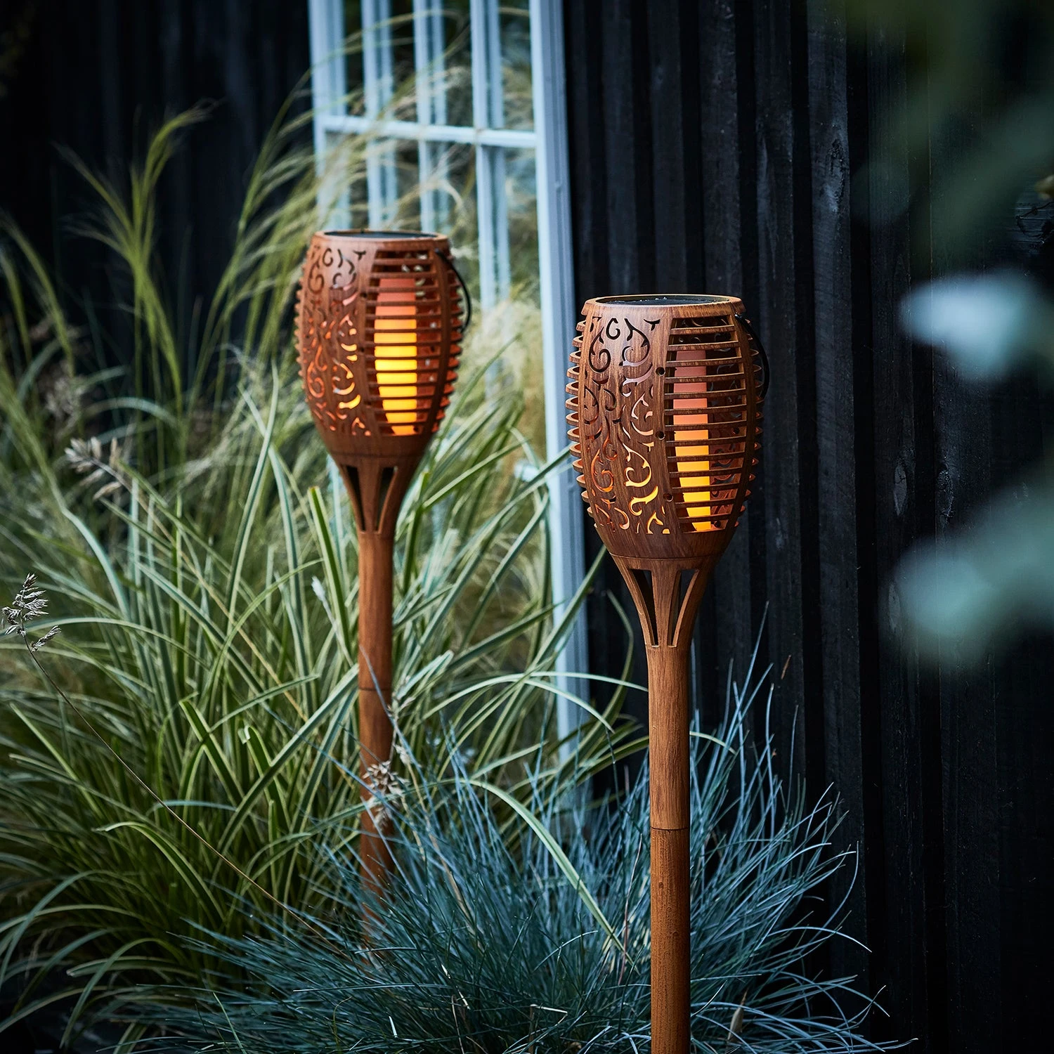 Our tiki torches are sure to add an ambient glow to your outdoor space. With ultra realistic flickering flames within, they’re perfect for lining gardens and illuminating summer BBQs! Stake them into a sunny spot of the garden for up to 10 hours of illumination each evening in the spring & summer months.
