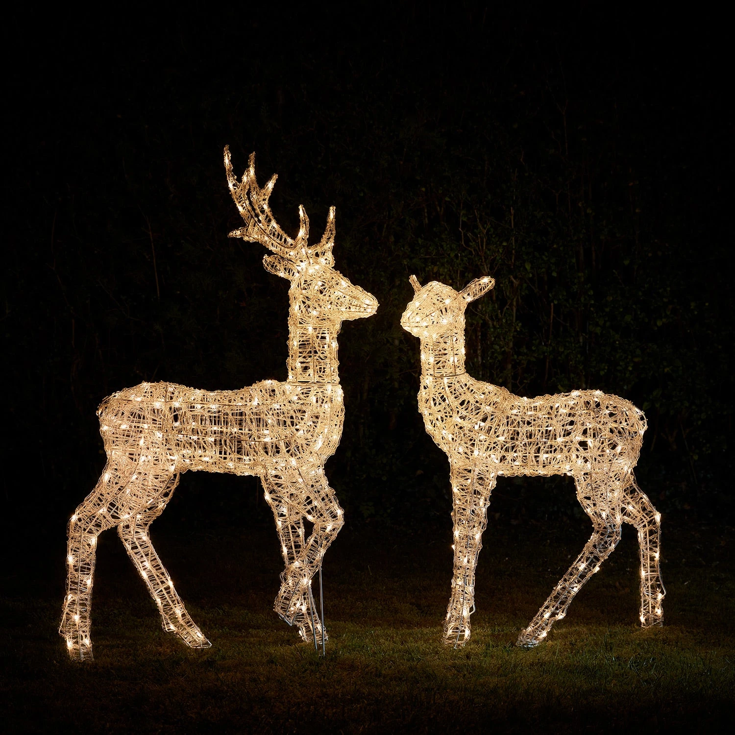 Illumiate your garden this festive season our spectacular Twinkly Stag & Doe Reindeer duo. These reindeer stand 120cm and 88cm in height and feature a total of 440 smart LEDs, all of which can be customised to create your dream Christmas garden. With a choice of up to 16 million colours, preset effects and animations, and the ability to create your own designs, you have complete control over the look of your reindeer.